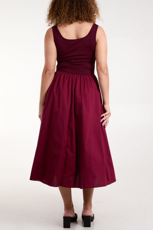 Square Neck Sleeveless Midi Dress With Pockets
