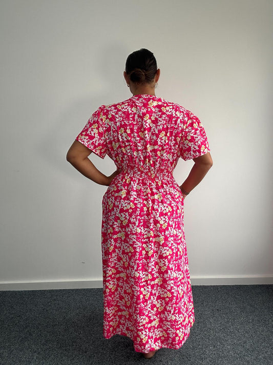 S&J Isabelle Green Pink Float Maxi Dress