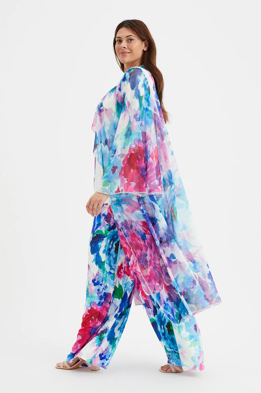 Scarlett & Jo Ivory Pink Blue Waterfall Long Cardigan