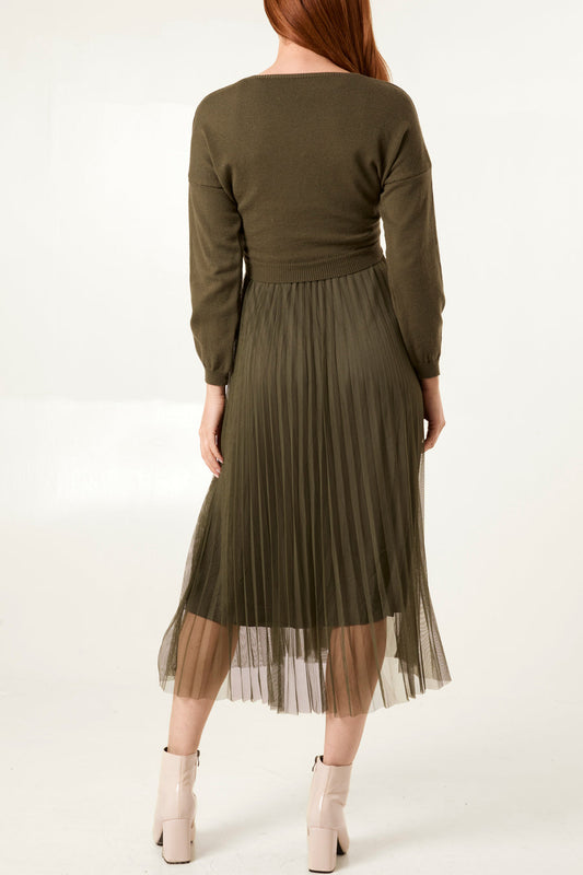 Knitted Top Satin Pleated Dress