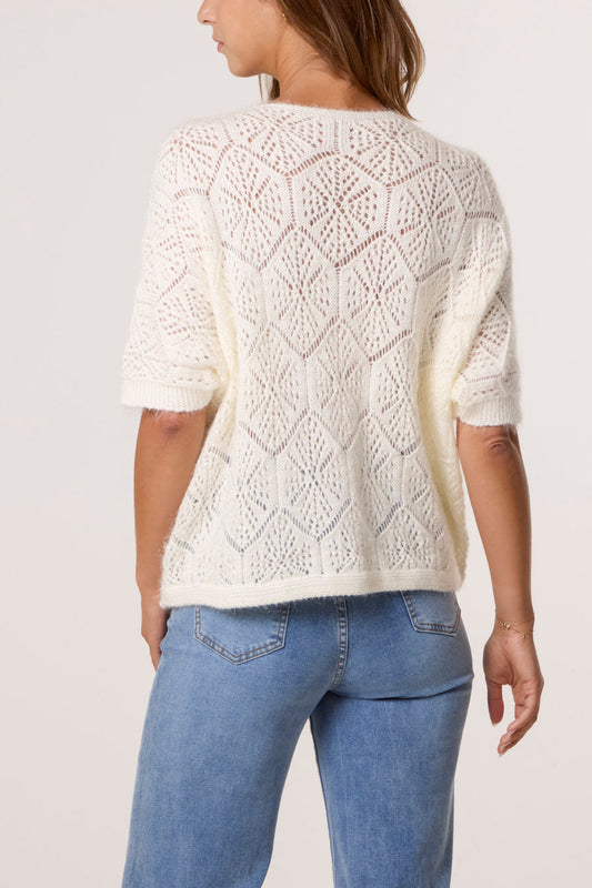 Pointelle Knit Short Sleeve Cardigan