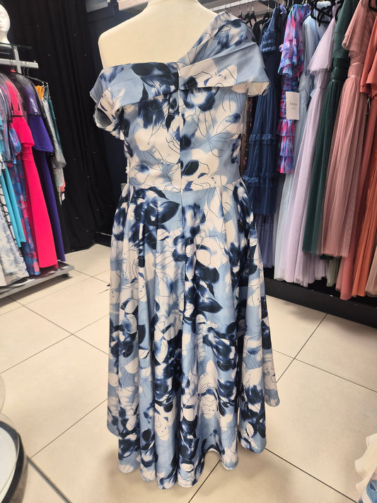 Gino Cerruti Silver/Blue Print Embellished Belt MOB Dress