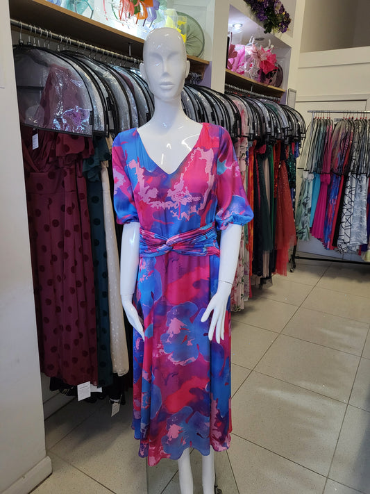 Lizabella V Neck Printed Midi Dress With Ruched Waist