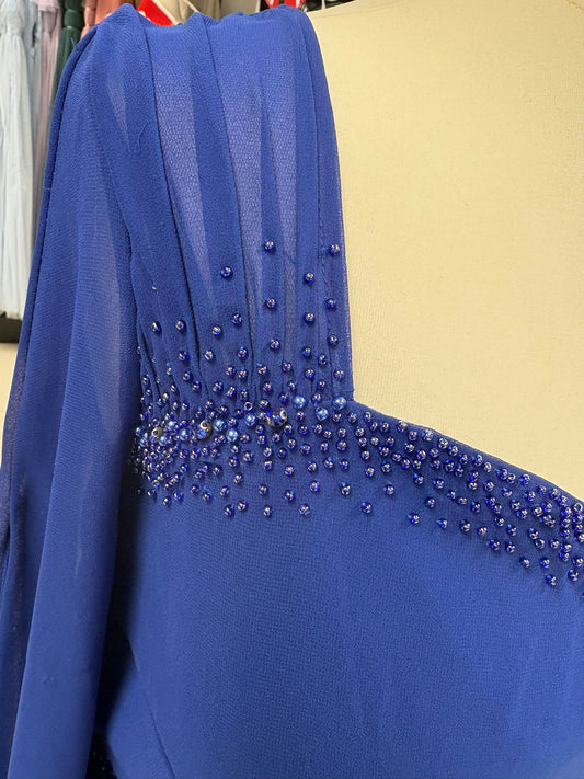Gino Cerruti Blue Chiffon Beaded MOB Dress
