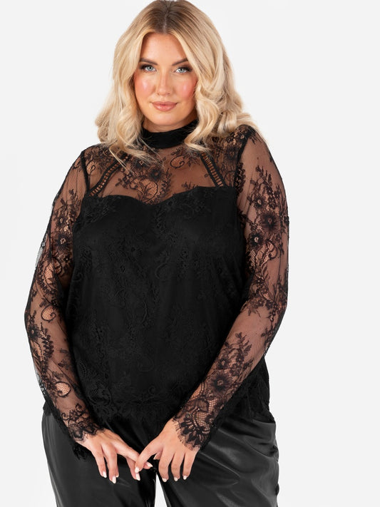 Lovedrobe Lace High Neck Long Sleeve Top