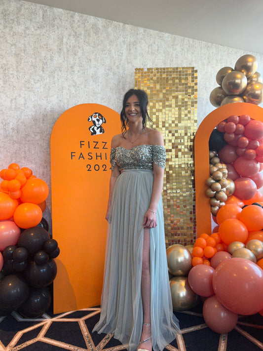 Maya Sage Green Embellished Bardot Maxi Dress With Side Slit