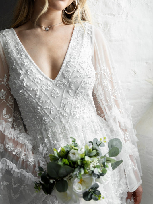 Maya Ivory Fully Embellished V Neck Bridal Maxi Dress