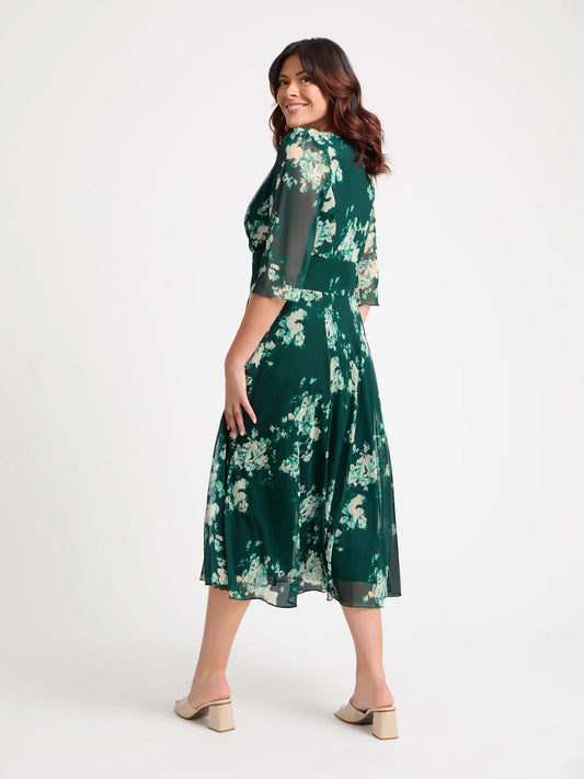 Scarlett & Jo Helena Green Ivory Midi Dress