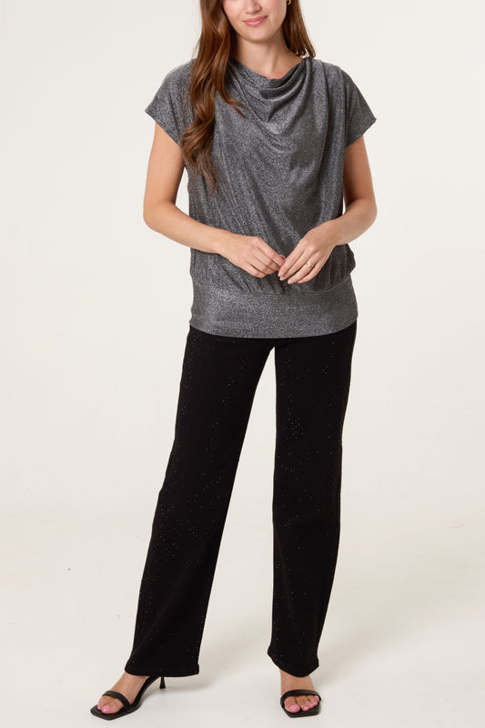 Lovedrobe Black Sequin & Velvet Trim Mini Wrap Dress