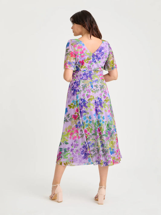 Scarlett & Jo Victoria Lilac Multi Midi Dress