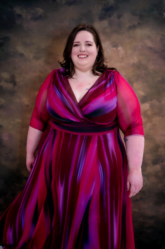 Scarlett & Jo Verity Ikat Wine Print Maxi Gown