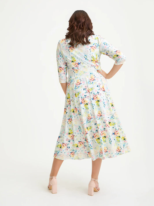 Scarlett & Jo Helena Ivory Lemon Multi Midi Dress
