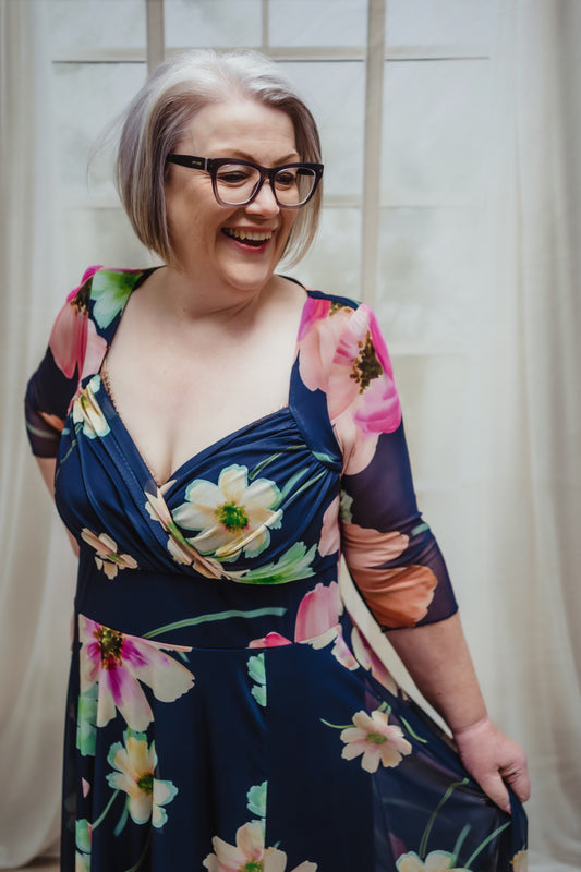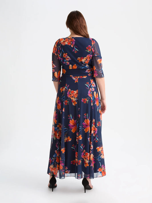 Scarlett & Jo Elizabeth Navy Pink Print Maxi Dress