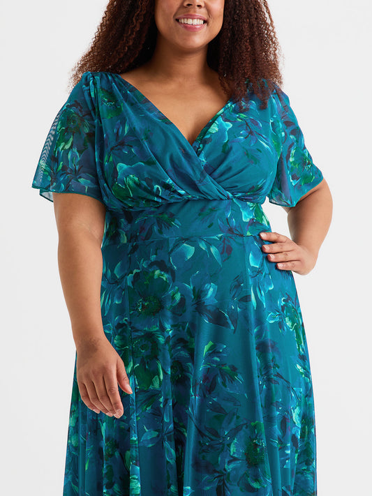 Scarlett & Jo Isabelle Teal Blue Peacock Maxi Dress