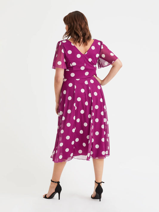 Scarlett & Jo Victoria Mulberry Polka Midi Dress