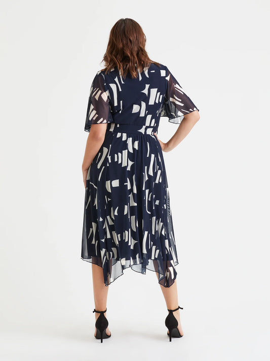 Scarlett & Jo Julie Navy Geometric Hank Hem Midi Dress