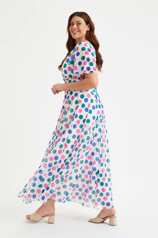 Scarlett & Jo Isabelle Ivory Multidot Maxi Dress