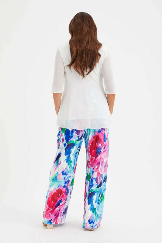 Scarlett & Jo Ivory Pink Blue Waterfall Long Cardigan