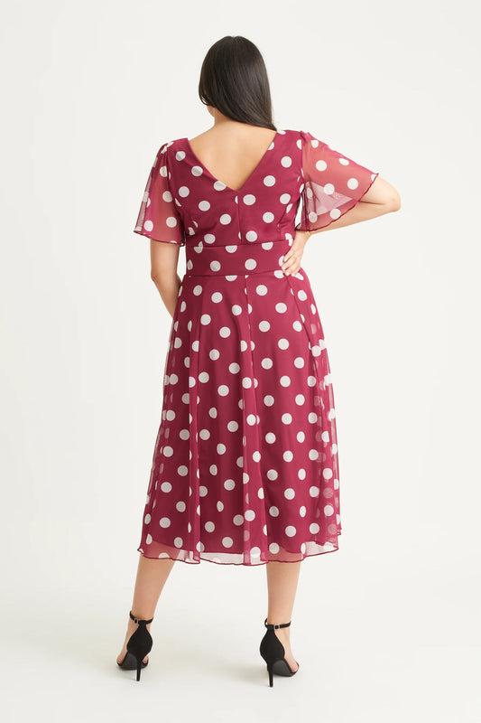 Scarlett & Jo Victoria Claret Spot Midi Dress