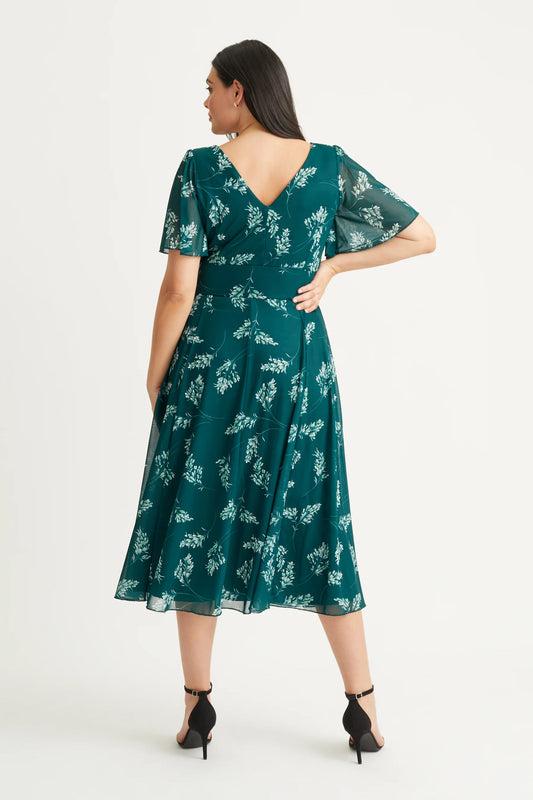 Scarlett & Jo Victoria Bottle Green Print Midi Dress