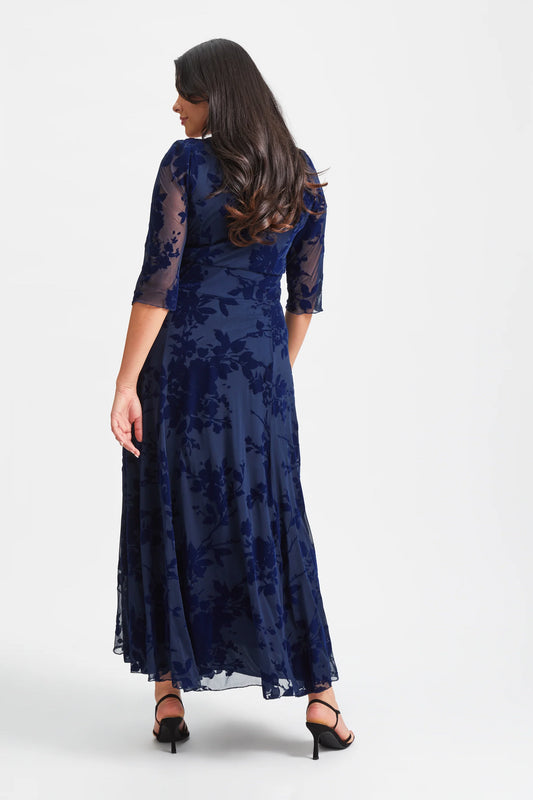 Scarlett & Jo Isabelle Dark Navy Velvet Flock Maxi Dress