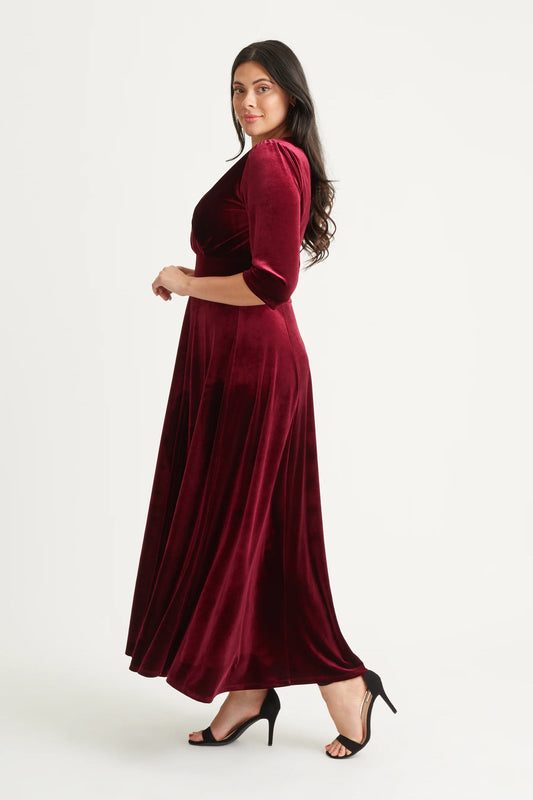 Scarlett & Jo Verity Velvet Claret Maxi Dress