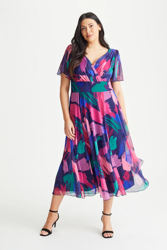 Scarlett & Jo Victoria Navy Magenta Midi Dress