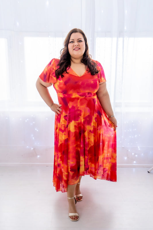 Scarlett & Jo Tilly Orange Floral Print Sweetheart Dress