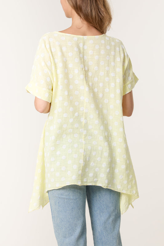 Polka Dot Asymmetric Hem Cotton Top