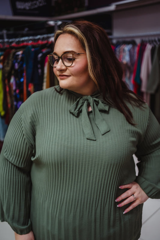 Plisse Long Sleeve Italian Blouse