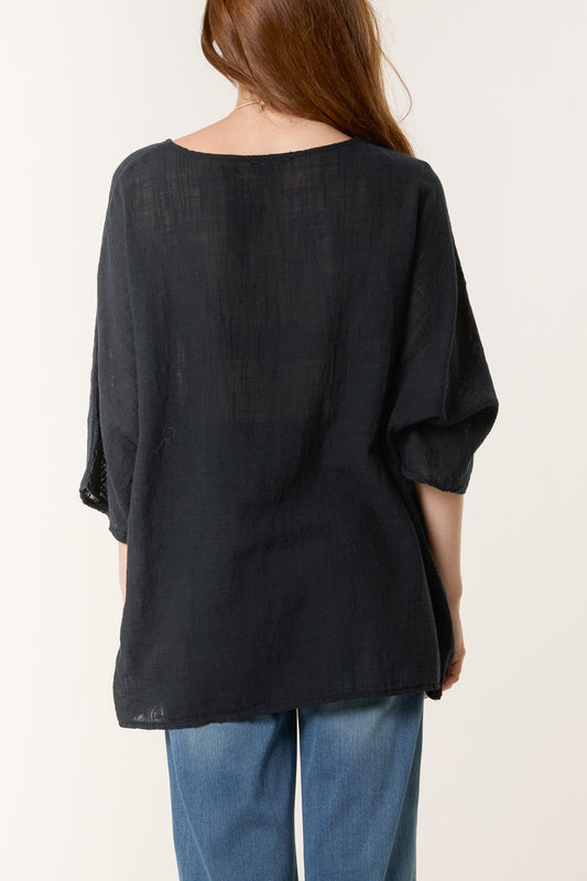 Open Collar Smock Tunic Top