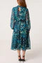 Abstract Leaf Print Puffball High Neck Dress