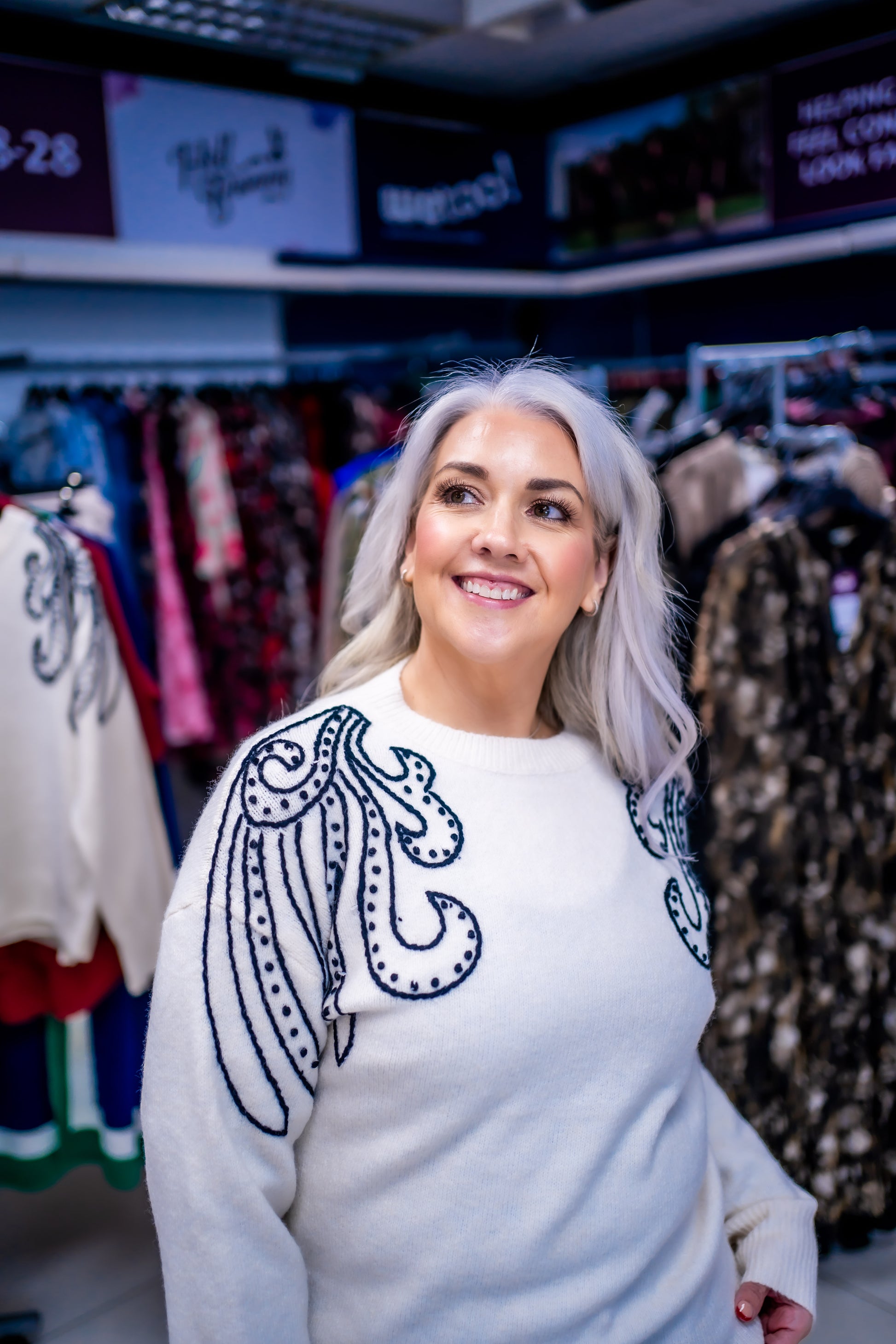 Embroidered Spiral Shoulders Knit Jumper