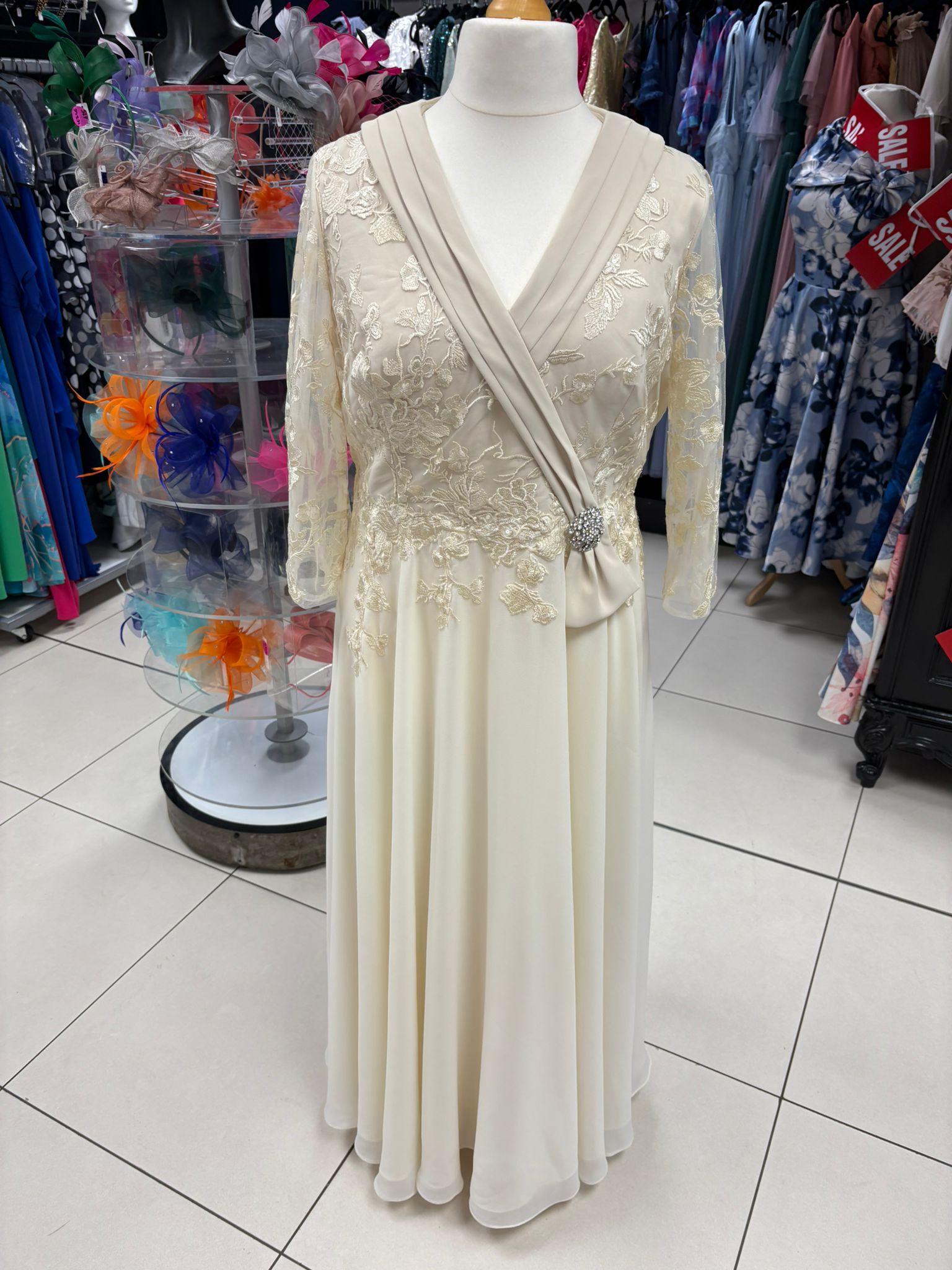 Gino Cerruti Cream Embellished Maxi dress