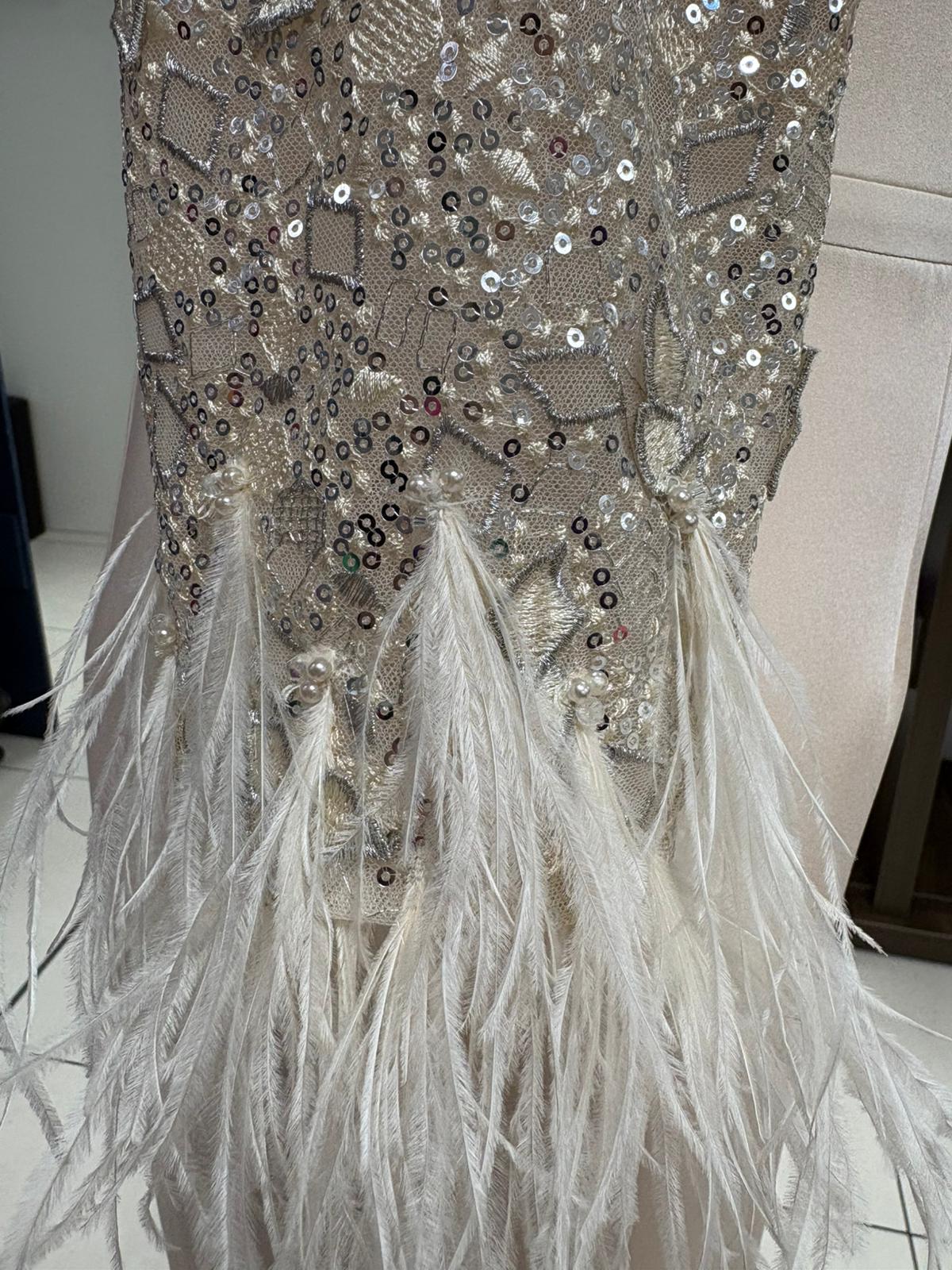 Gino Cerruti Satin Crepe MOB/MOG Dress With Feather Trim
