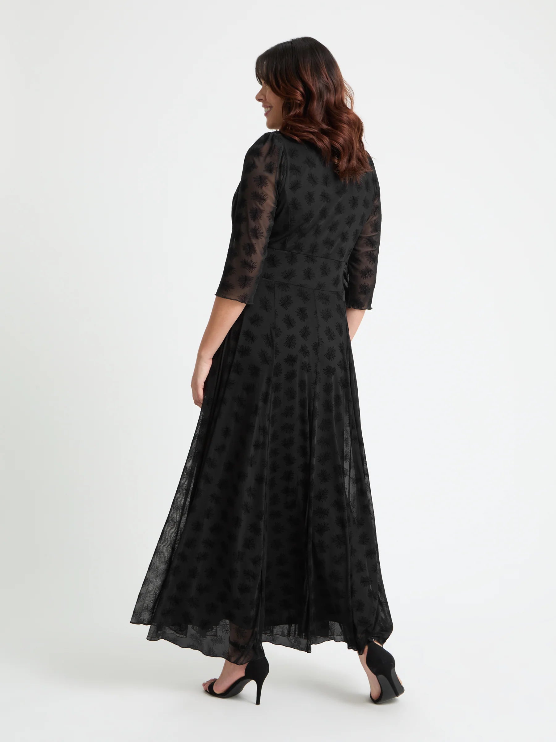 Scarlett & Jo Verity Black Flower Velvet Flock Maxi Dress