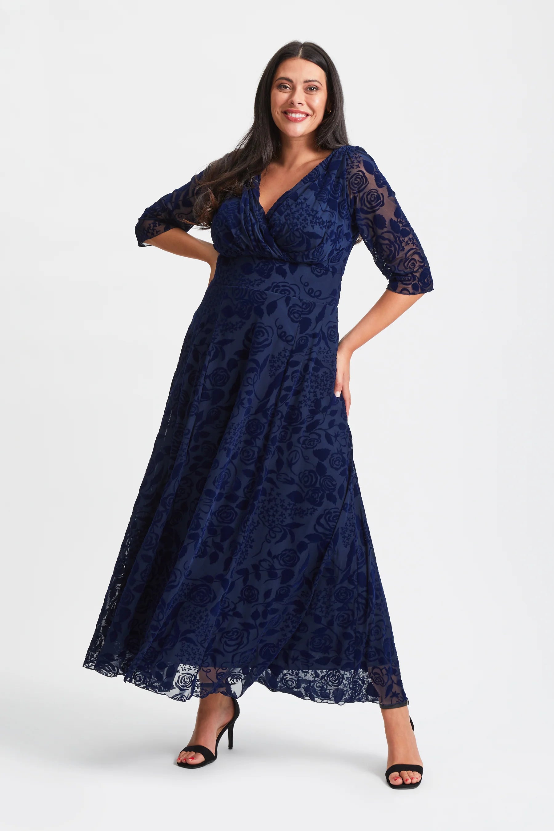 Scarlett & Jo Verity Dark Navy Velvet Flock Maxi Dress